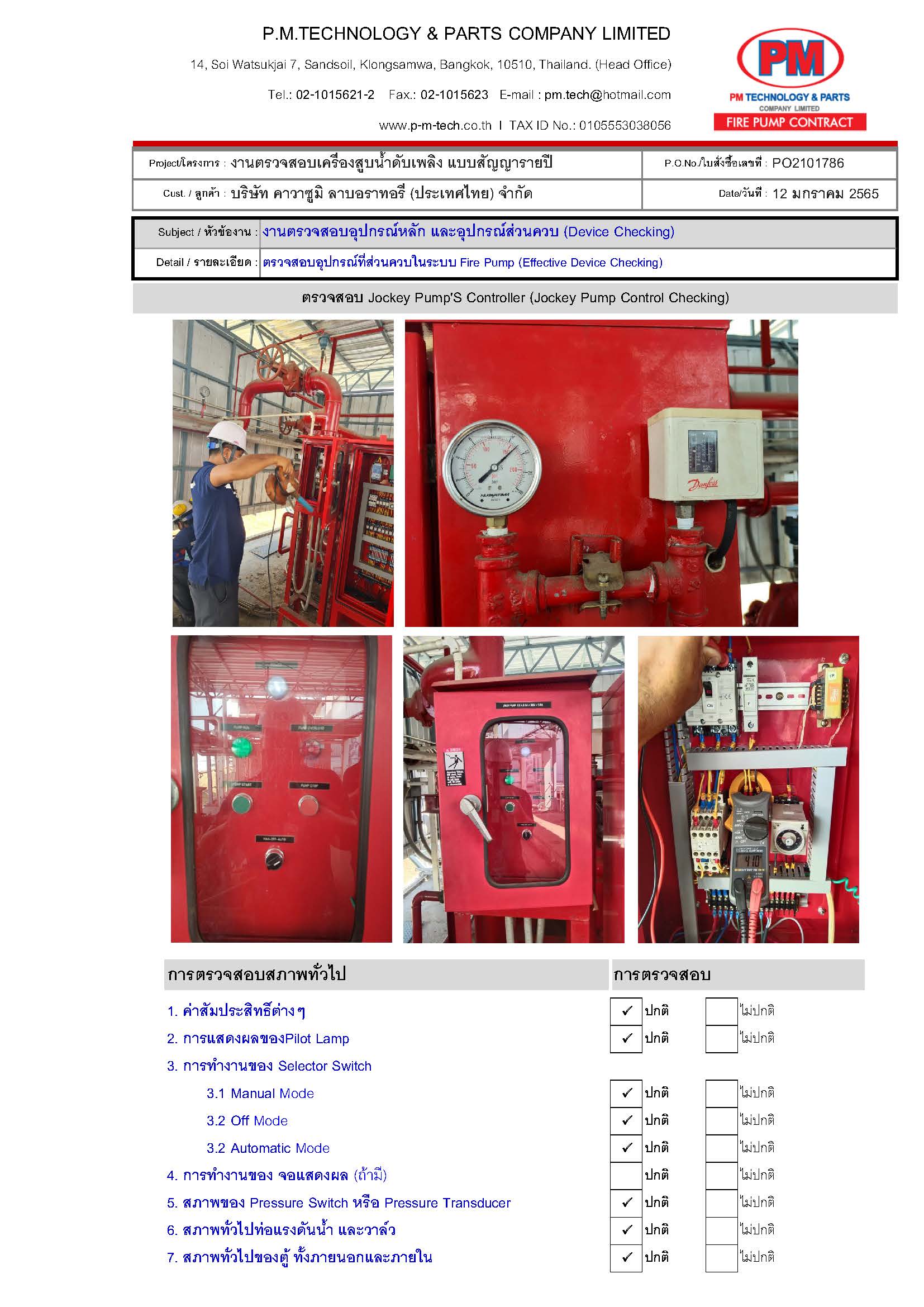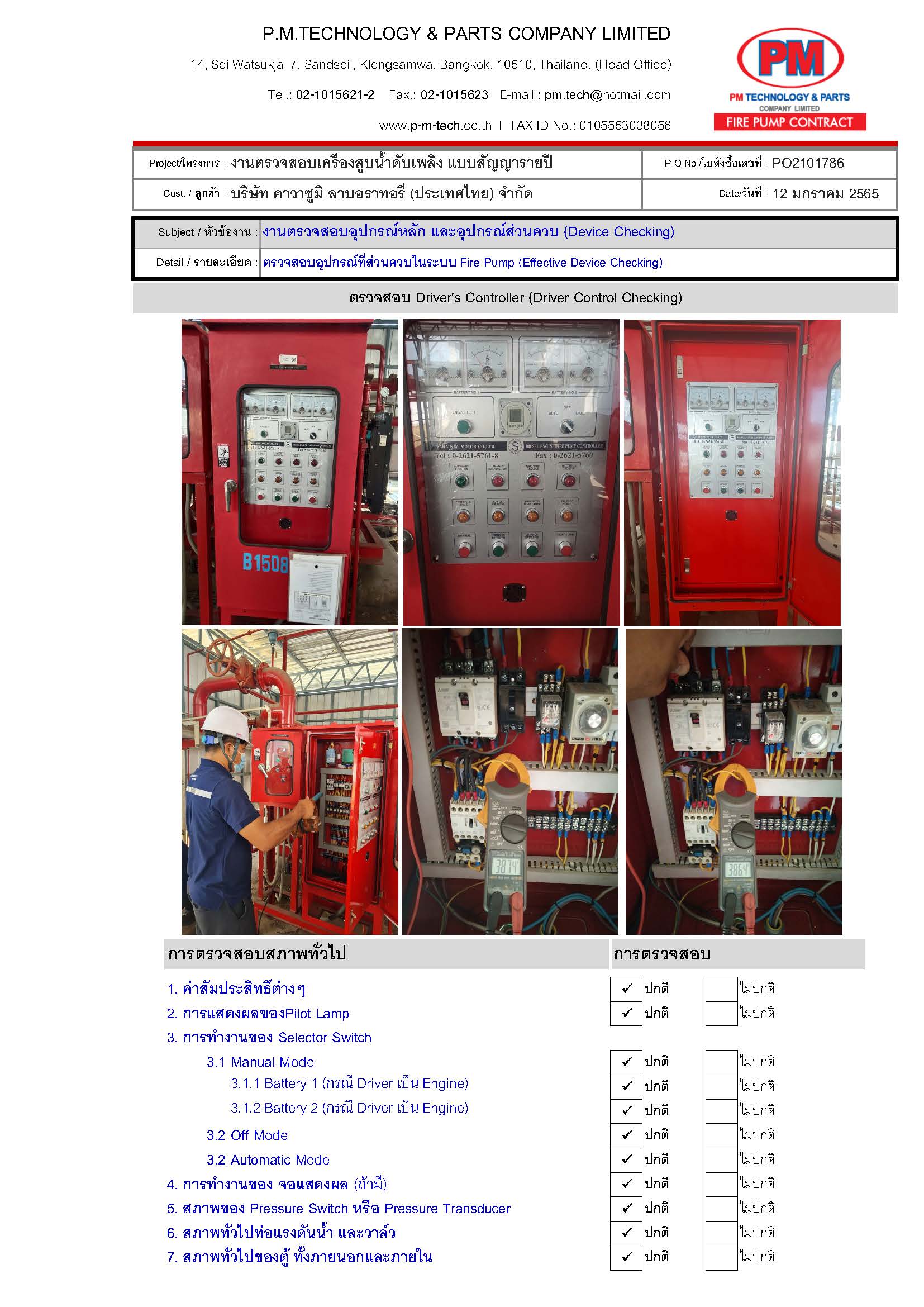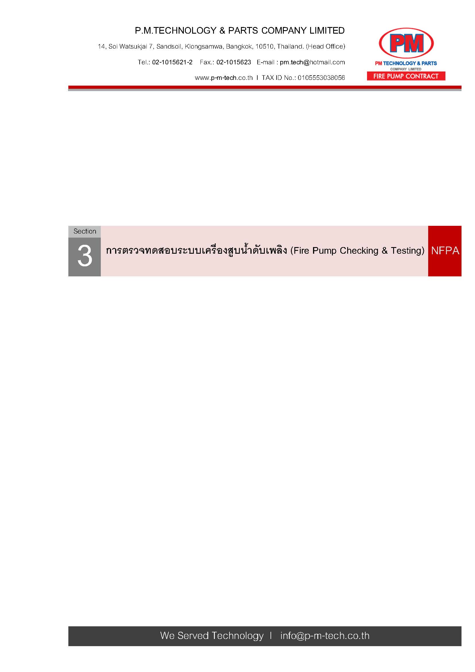 เข้าตรวจสอบ และทดสอบระบบ Fire Pump กว่า 25 รายการแบบสัญญารายปี (ไตรมาสละ 1 ครั้ง) พร้อม REPORT ทุกครั้งที่เข้าตรวจทดสอบ